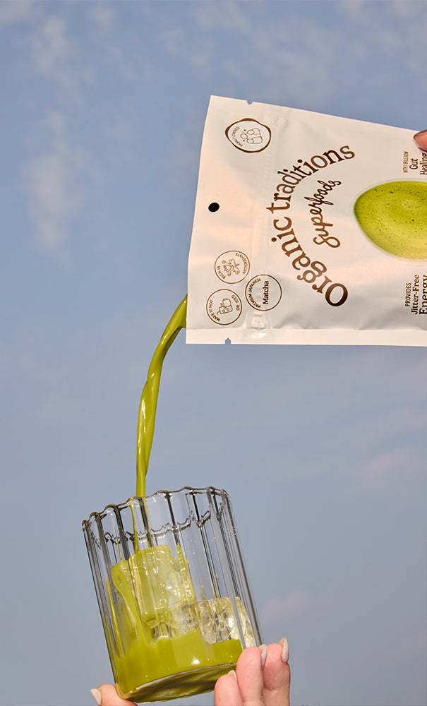 Our Organic Traditions Matcha Latte with Probiotics is a smooth, energizing blend of ceremonial matcha, coconut milk, and plant-based probiotics. Enjoy clean, sustained energy without the crash—perfect for your morning ritual or afternoon boost.